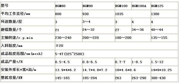 青石微粉磨的技術參數: